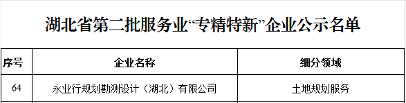 近日,湖北省發(fā)改委公示湖北省第二批服務(wù)業(yè)“專(zhuān)精特新”企業(yè)認(rèn)定名單,永業(yè)行旗下“永業(yè)行規(guī)劃勘測(cè)設(shè)計(jì)(湖北)有限公司”成功獲評(píng)。